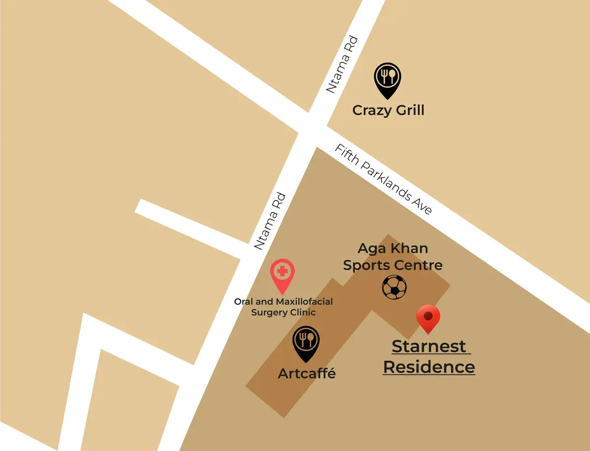 Located just minutes from Sarit Centre, Westgate Mall, and the Nairobi Expressway, Starnest Residence gives you seamless access to the city’s commercial, shopping, and entertainment hubs. Whether you’re commuting to work or enjoying weekend outings, you’re always a step ahead.